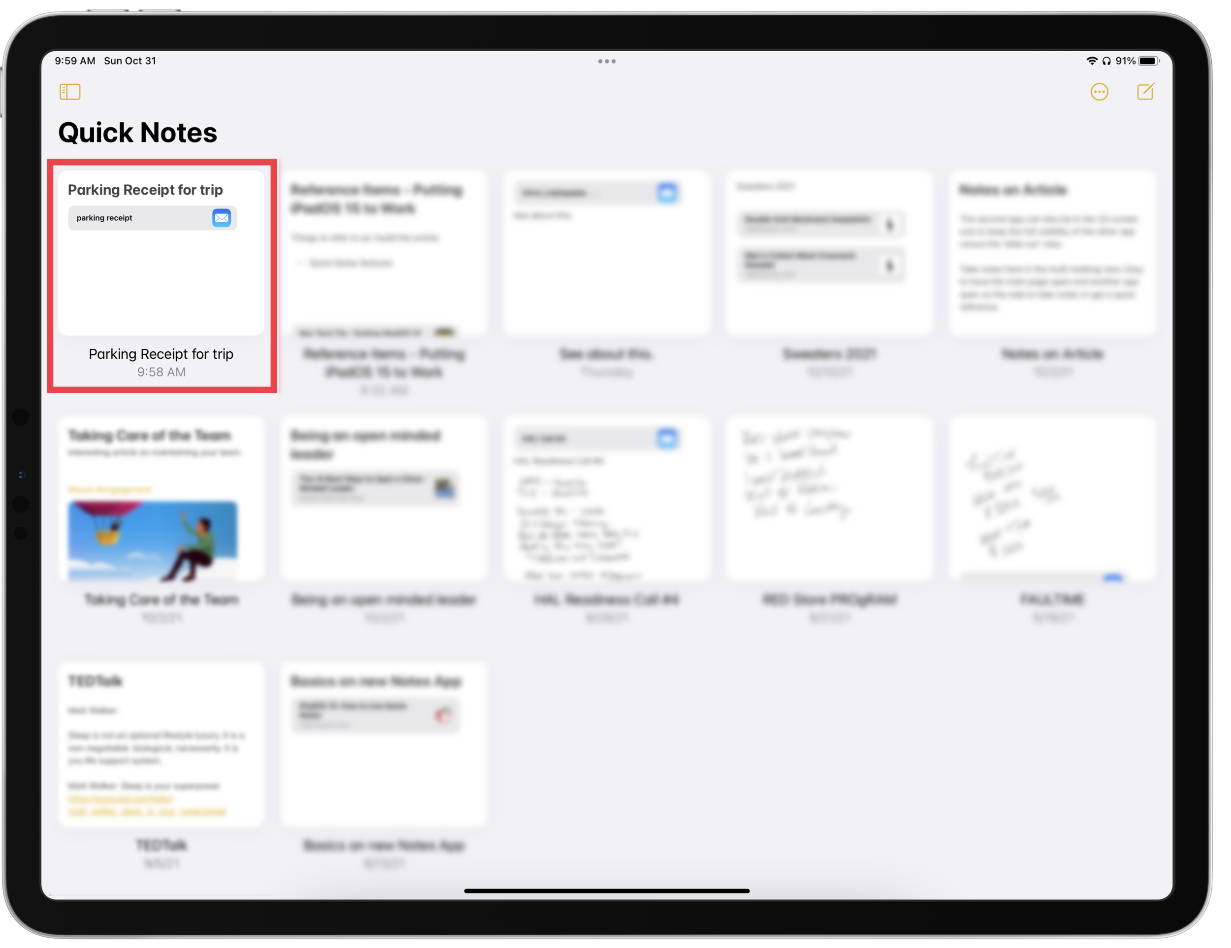 With the updates to Apple Notes in iOS 15, that gap is now closed even further, and I believe it may be the go-to app for almost any user. Even power users of other note taking apps will likely find a use for Apple Notes. (I count myself in that camp.) I am not going to do a complete in-depth look at Apple Notes here, but will in the future. What I do want to dive into is the new feature for Quick Notes. This is something that, I hope, will expand to other apps and become more integrated within the iPadOS (and even other operating systems) to make connecting information together easier.